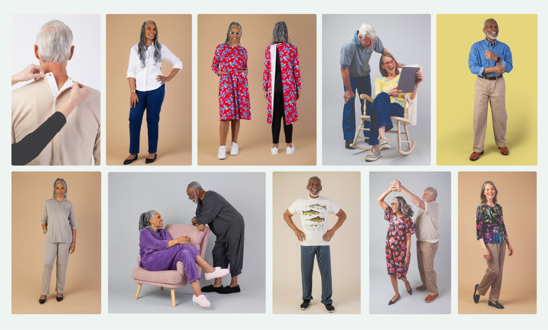 Every design decision was grounded in the company’s core mission: to deliver dignity, comfort, and convenience through thoughtful clothing. The new brand system was purposefully designed to resonate with both the aging population and the caregivers who often do the purchasing. A warm, neutral color palette provides an inviting canvas for the lively prints and patterns of the garments, while refreshed on-model photography introduces a more modern, energetic, and optimistic feel—evolving the brand’s visual language to better reflect the spirit of today’s customers.